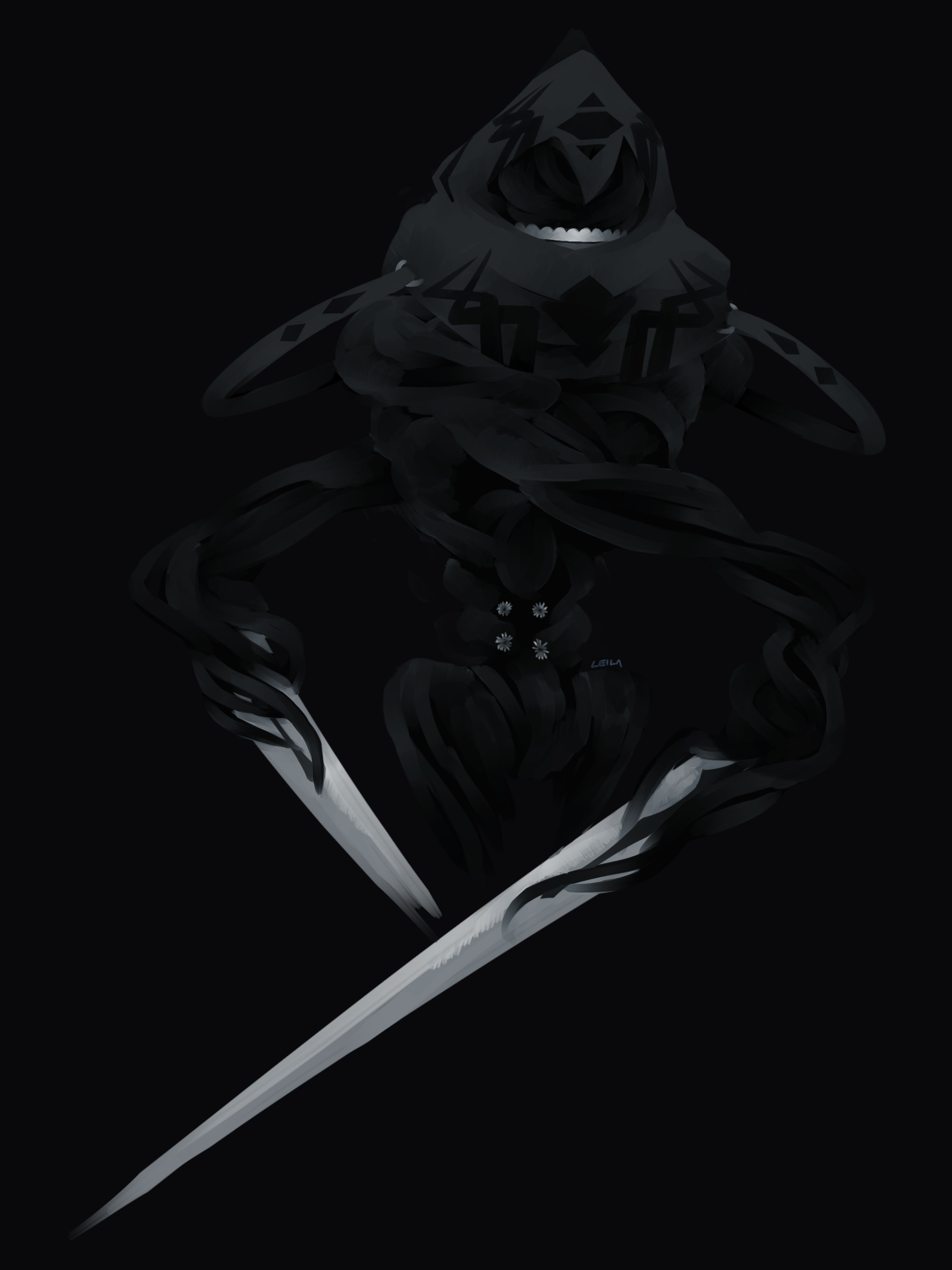 Badge art for Shadowlord, an additional boss planned for (but never implemented in) the "Goober Mode" sub-route of Summer-ish Event 2022. August 21st, 2022.